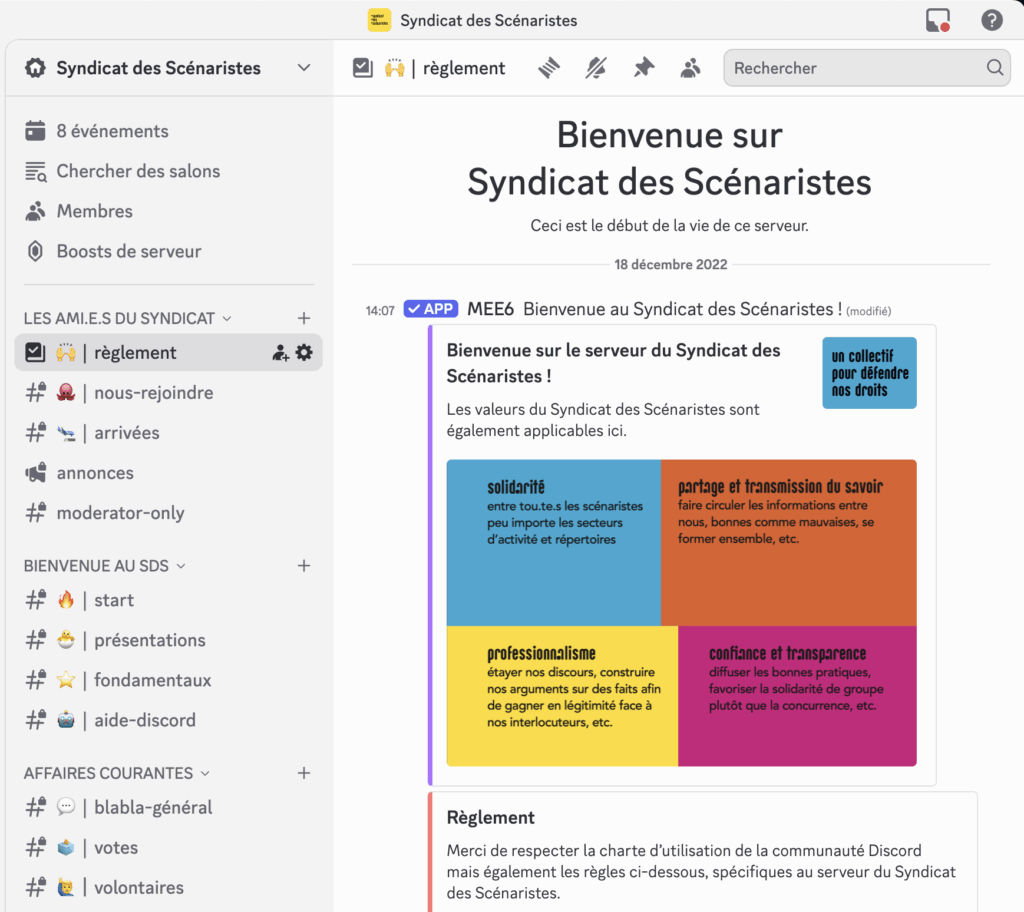 Les échanges ont lieu sur un serveur Discord et lors de réunions régulières, permettant à chacun·e de proposer, voter et participer aux décisions collectives.